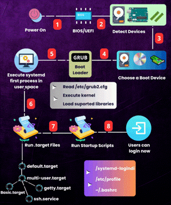 # GRUB, # Kernel, # systemd, # Linux shell, #