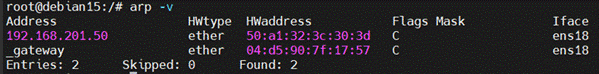 | _gateway | ether | 04:d5:90:7f:17:57 | C | ens18 | |||||||||||||||||||||||||||||||||||