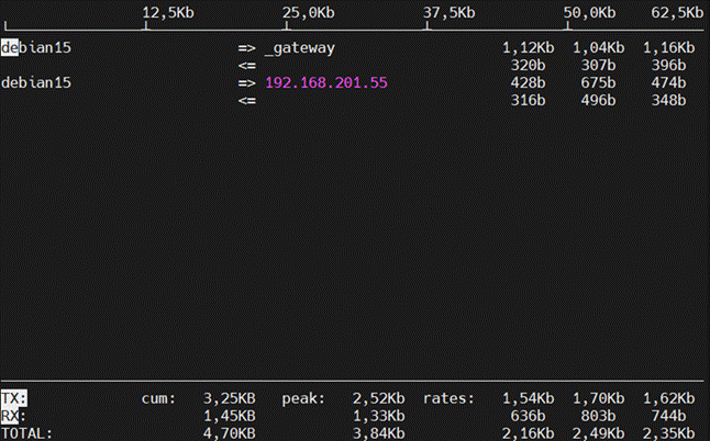 | iftop | Bant genişliği izleme | ||||||||||||||||||||||||||||||||||||||