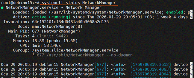 | systemctl ile NetworkManager veya networking servisini kontrol etme: | |||||||||||||||||||||||||||||||||||||||