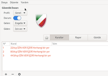 | ⭐UWF / GUWF | Uncomplicated Firewall - Karmaşık olmayan Güvenlik Duvarı / Grafik arayüzlü | |||||||||||||||||||||||
